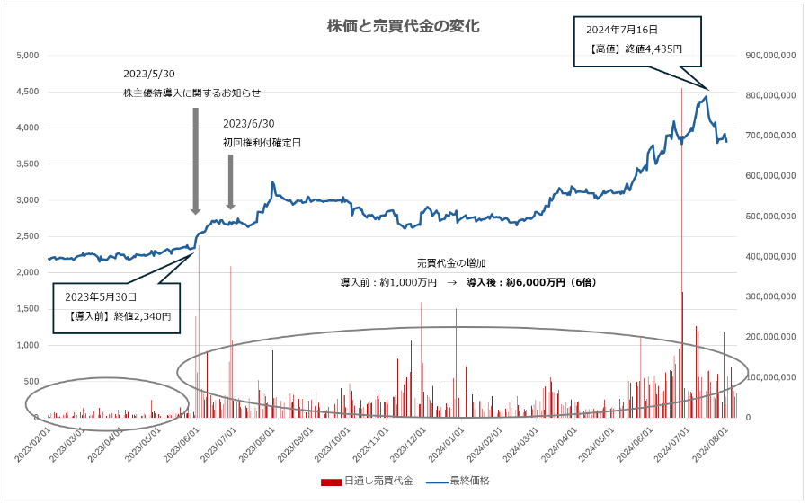 株主優待が正解なのか。導入前の懐疑心を成果が払拭。1日平均売買代金が6倍に増加。