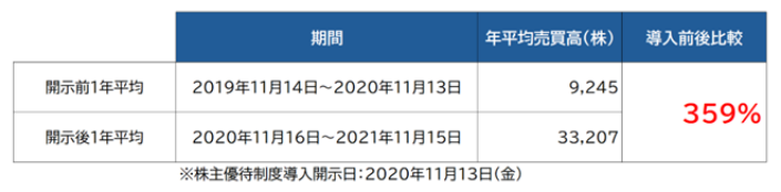 - ■プレミアム優待倶楽部導入で年平均売買高が約3.6倍